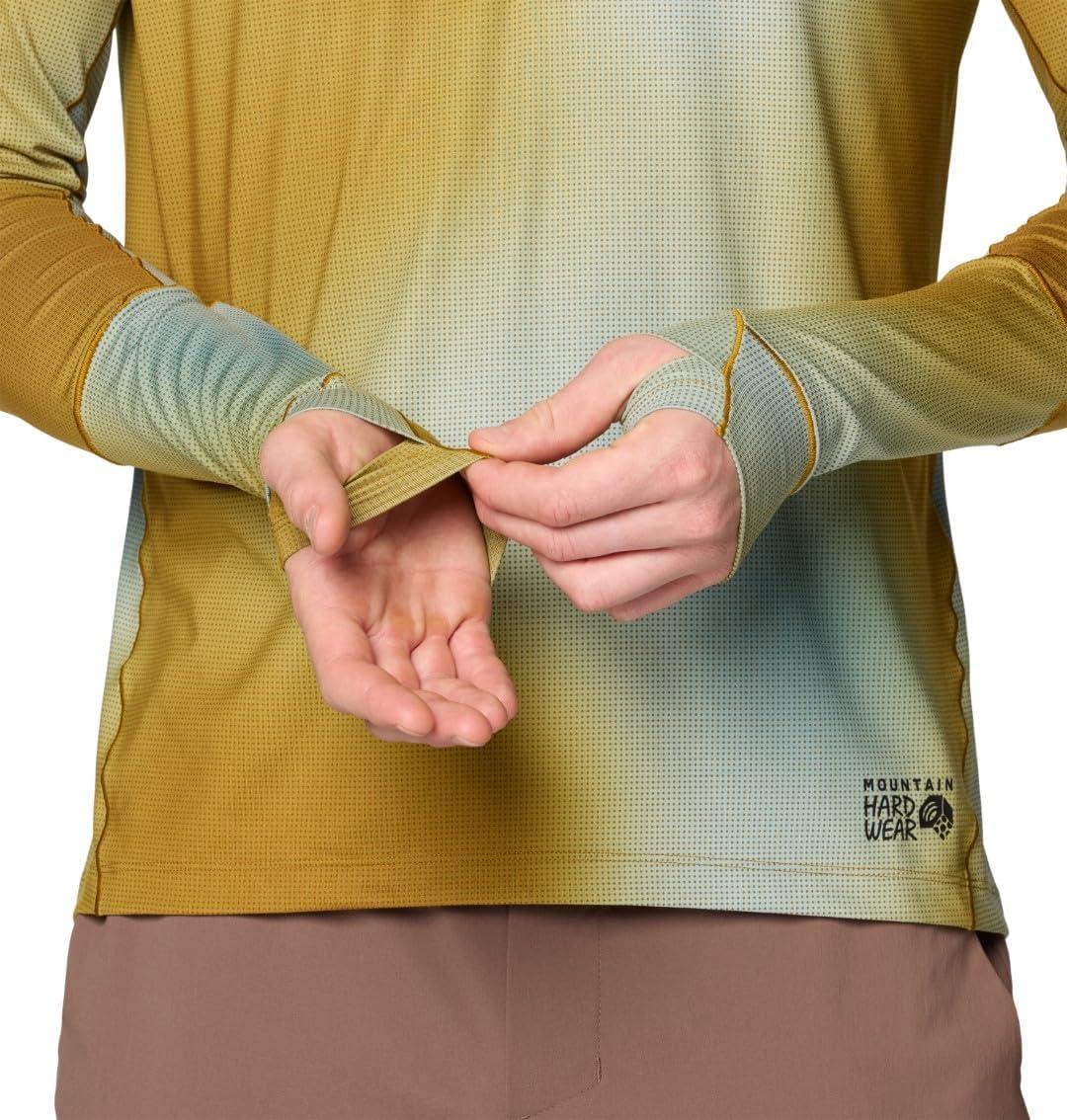 Mountain Hardwear Mens Butter Up Long Sleeve Half Zip(Olive Gold Ombre Print)