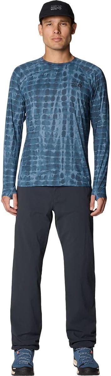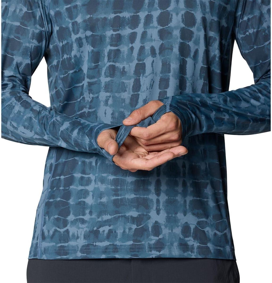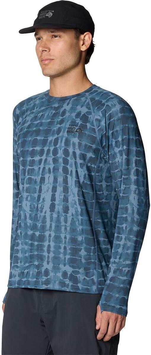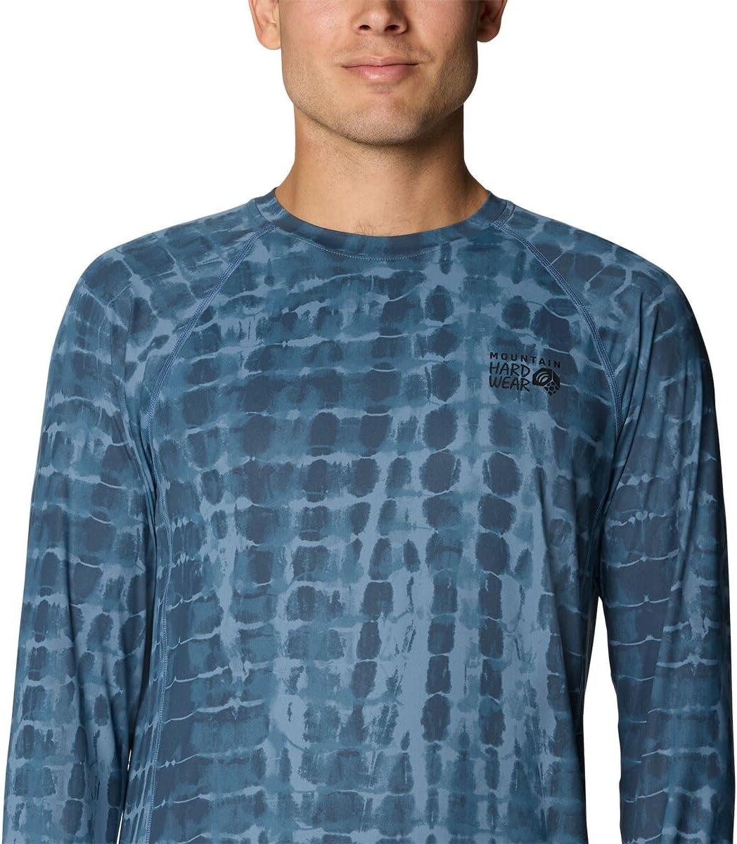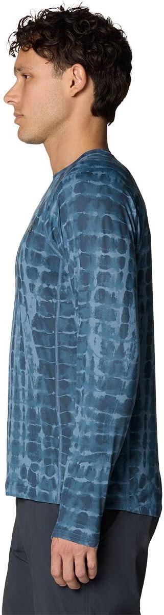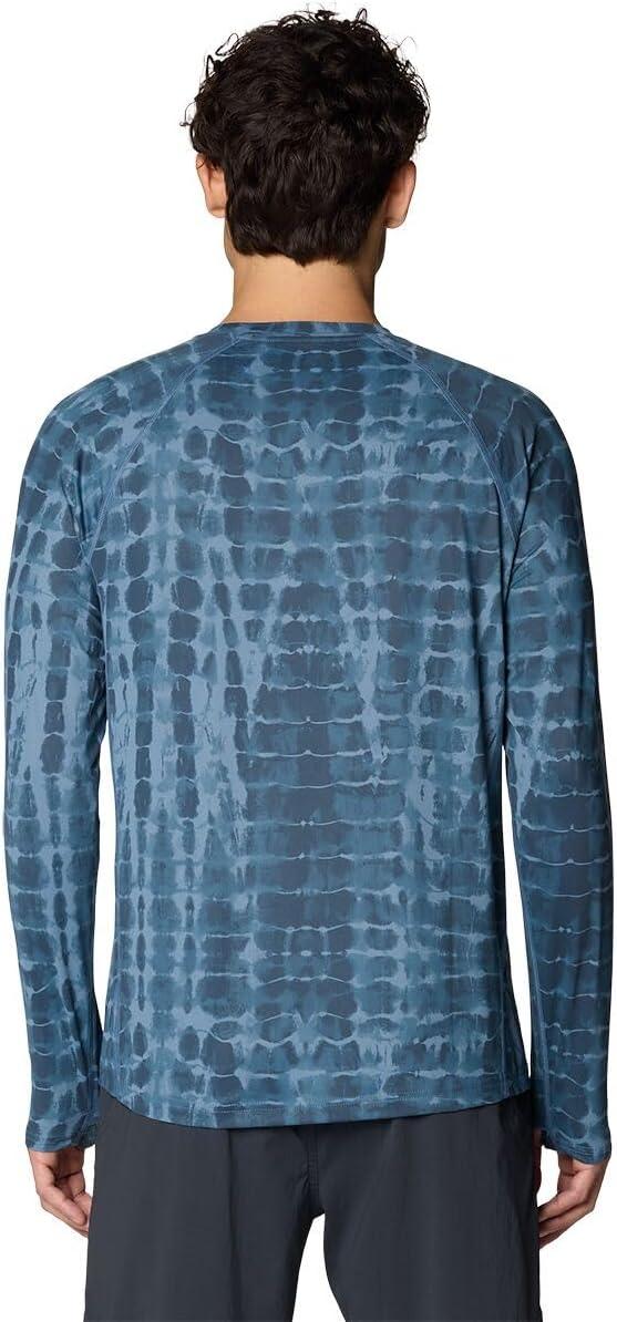 Mountain Hardwear Men’s Crater Lake Long Sleeve Crew Shirt for Hiking, Camping, Outdoor Adventures, and Casual Wear(Adriatic Blue Prismatic Print)