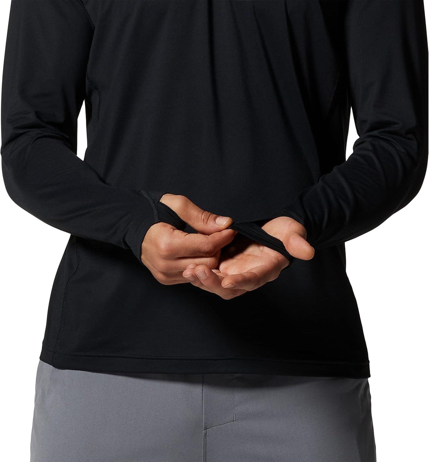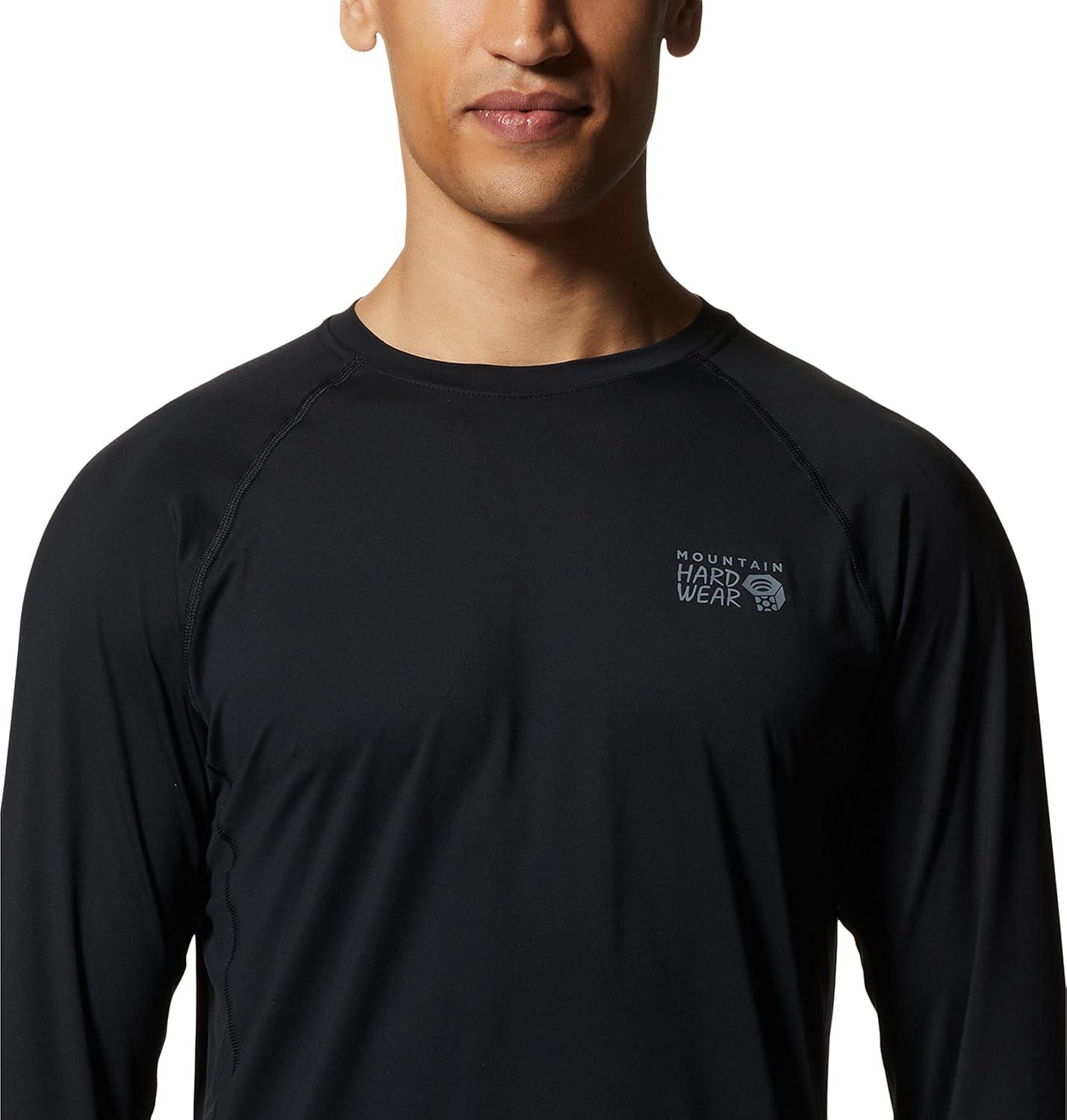 Mountain Hardwear Men’s Crater Lake Long Sleeve Crew Shirt for Hiking, Camping, Outdoor Adventures, and Casual Wear(Black)