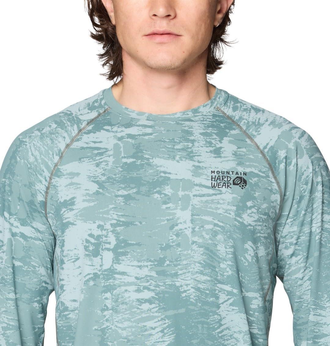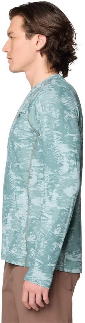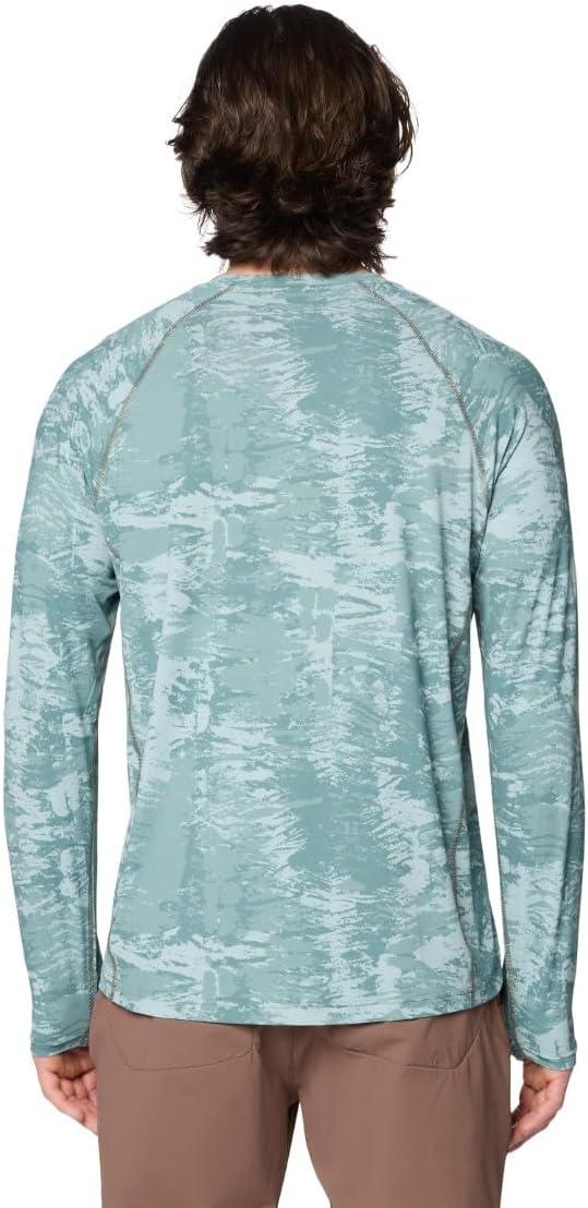 Mountain Hardwear Men’s Crater Lake Long Sleeve Crew Shirt for Hiking, Camping, Outdoor Adventures, and Casual Wear(Blue Sage Inked Dyed Print)
