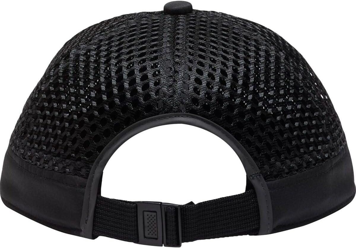 A modified trucker with wide mesh paneling for max breathability.