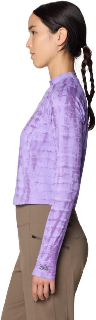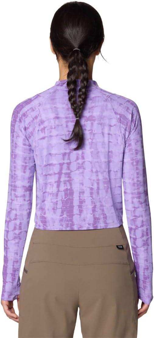 Mountain Hardwear womens Crater Lake Long Sleeve Crop(Harbor Violet Prismatic Print)