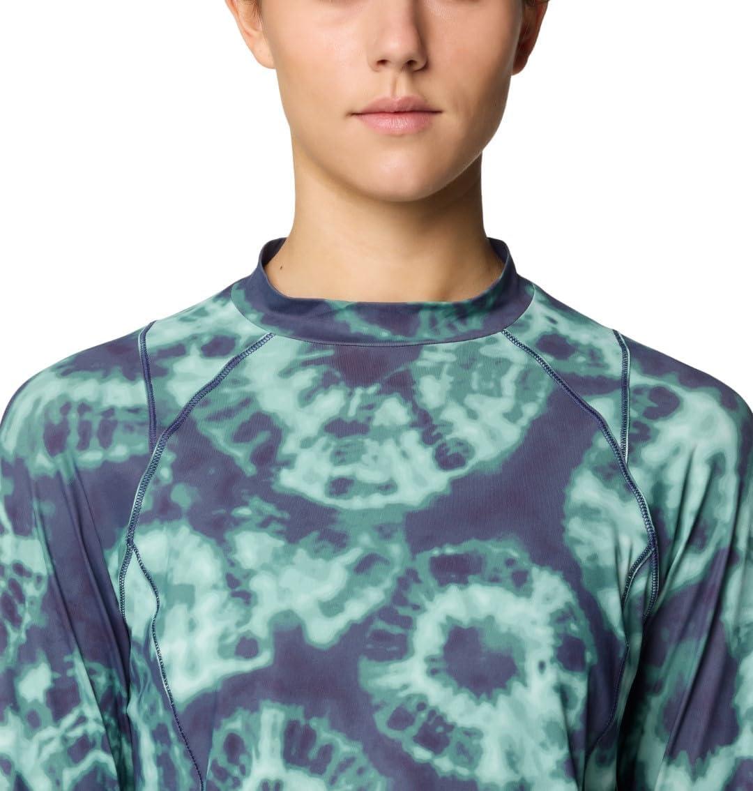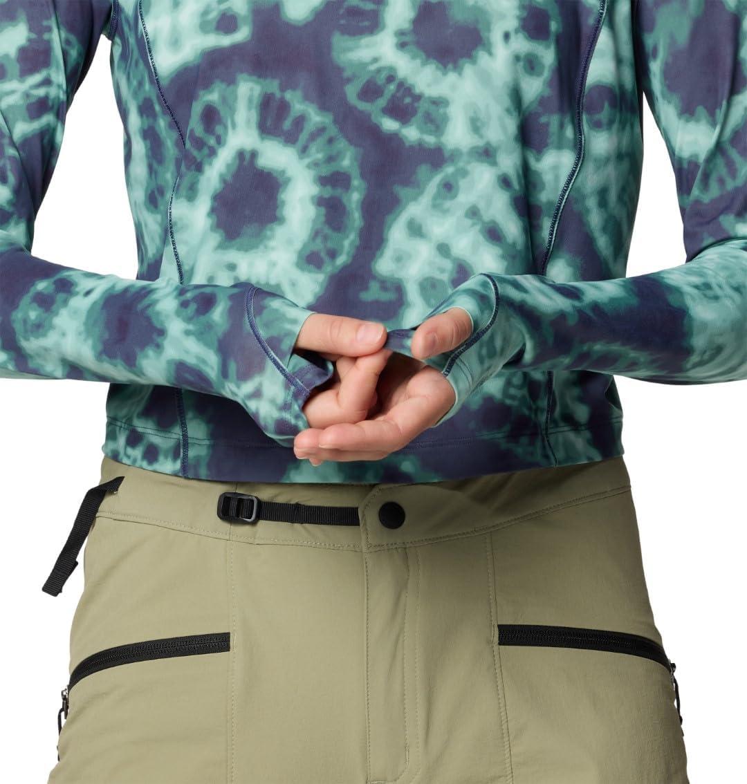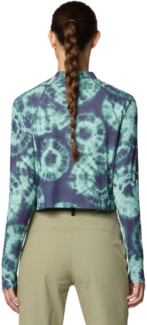 Mountain Hardwear womens Crater Lake Long Sleeve Crop(Lapis Dusk Spore Dye Print)