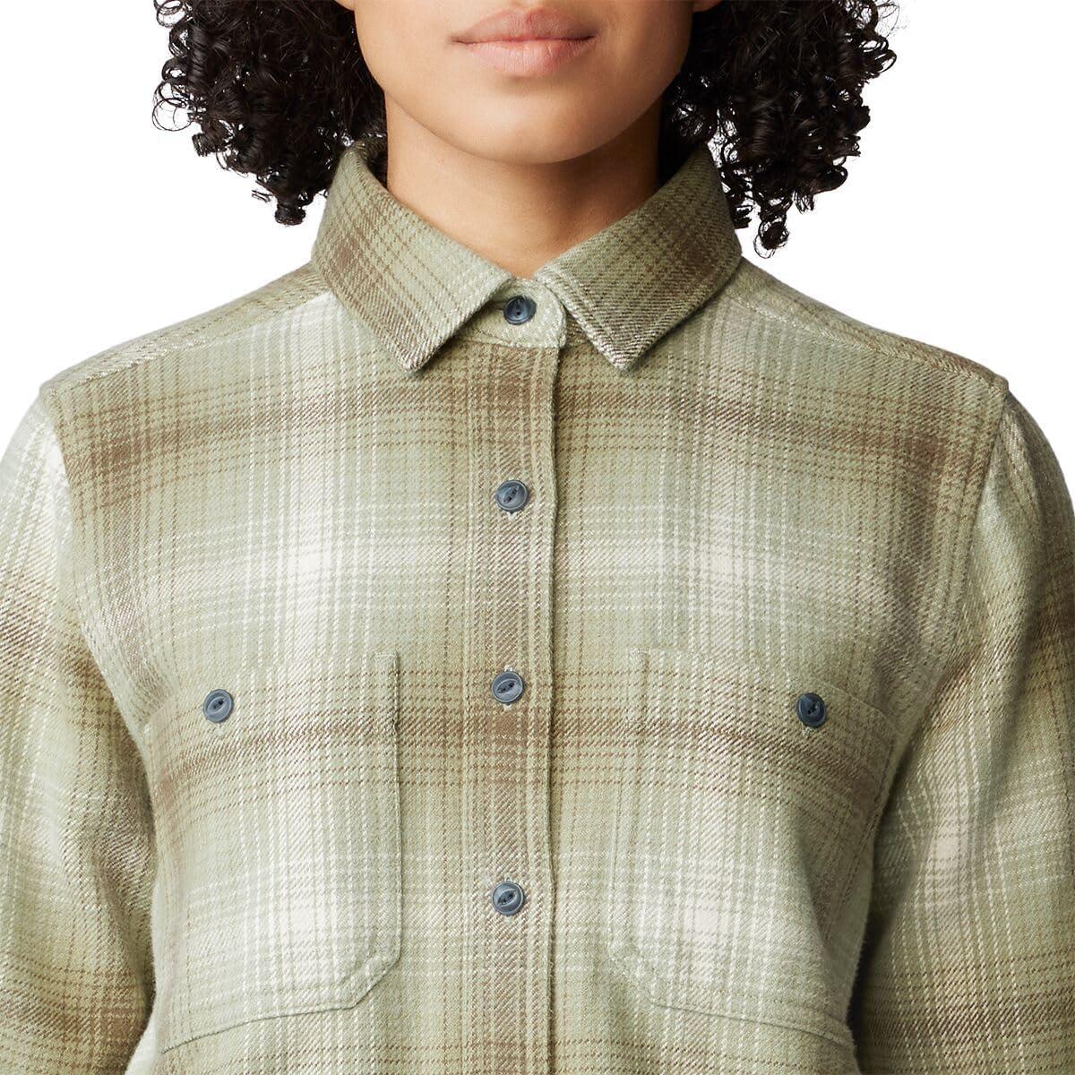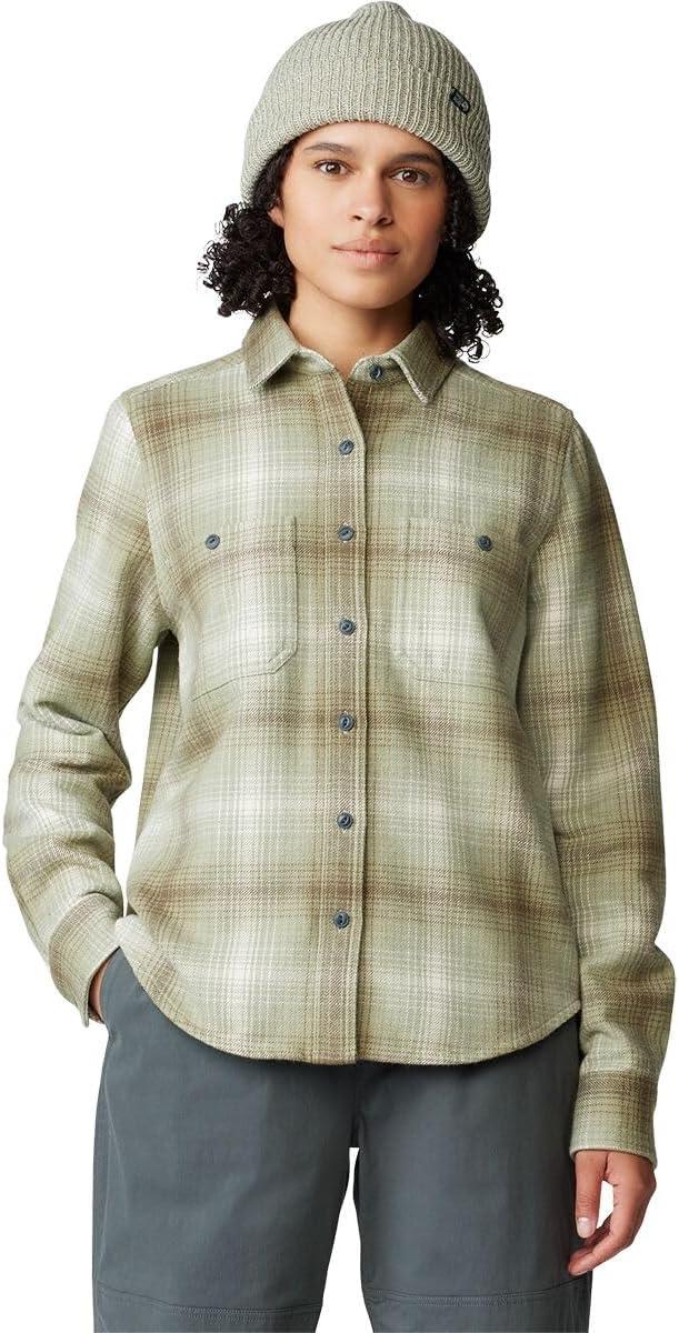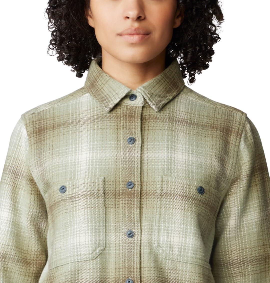 Mountain Hardwear Womens Plusher Long Sleeve ShirtShirt(White Sage Ombre Buffalo Check)